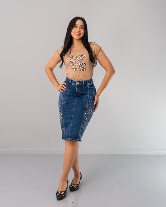 FALDA JEANS 3/4 BOLSILLOS AL LADO BRILLOS