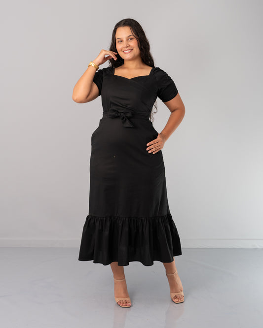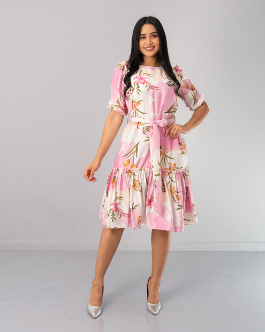 VESTIDO 3/4 MANGA RESORTE Y CINTURON