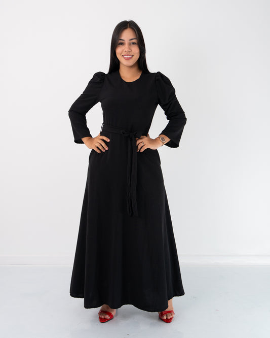 VESTIDO LARGO ROTONDO CON CINTURON
