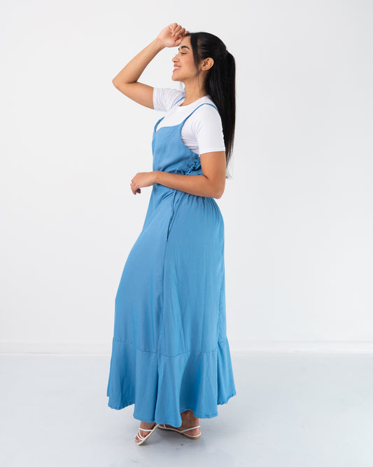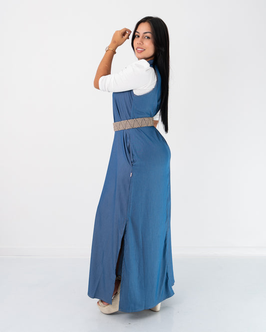 VESTIDO LARGO DE TIRAS CON BLUSA TELA CHAMBRAY