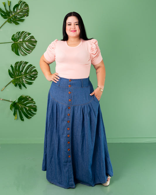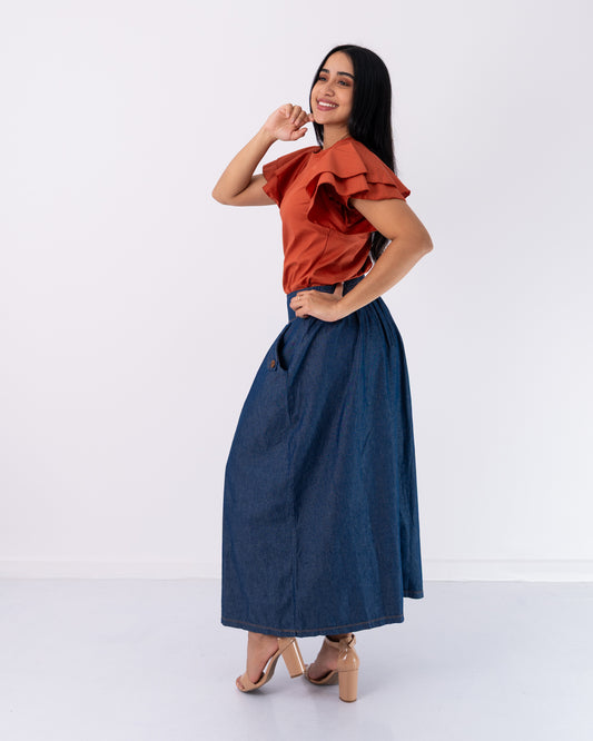 FALDA LARGA BOTONES ADELANTE TELA CHAMBRAY