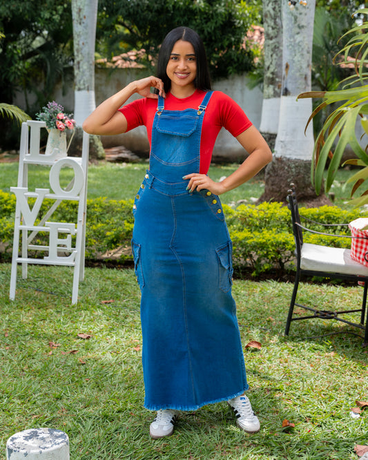 JARDINERA LARGA JEANS BOLSILLOS CAMUFLADA