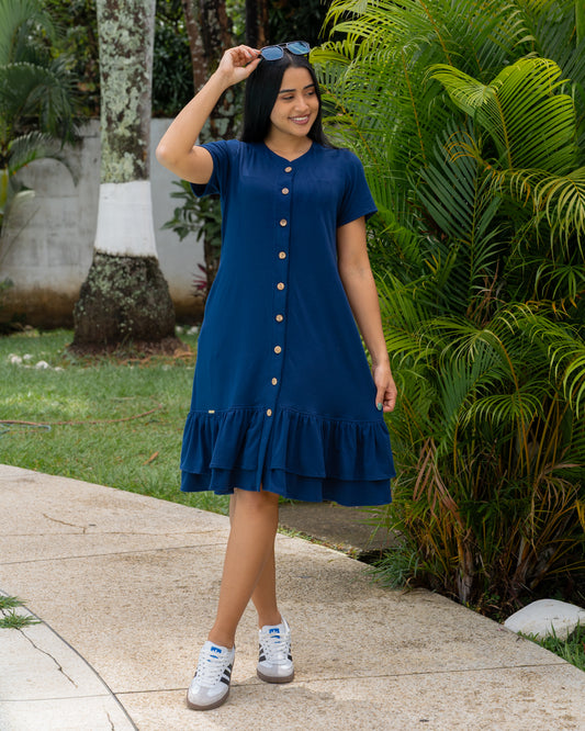VESTIDO EN TIEMPOS MANGA 3/4 BOTONES ADELANTE