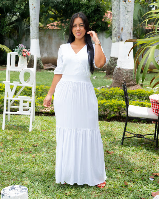 VESTIDO LARGO BOLERO MANGA 3/4 TELA RIHANNA