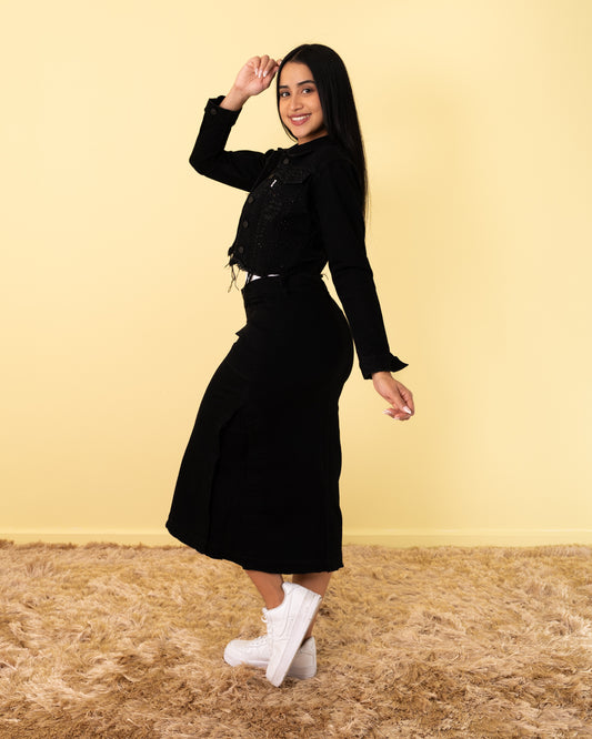 CHAQUETA JEANS MANGA LARGA RIGIDA BRILLANTE