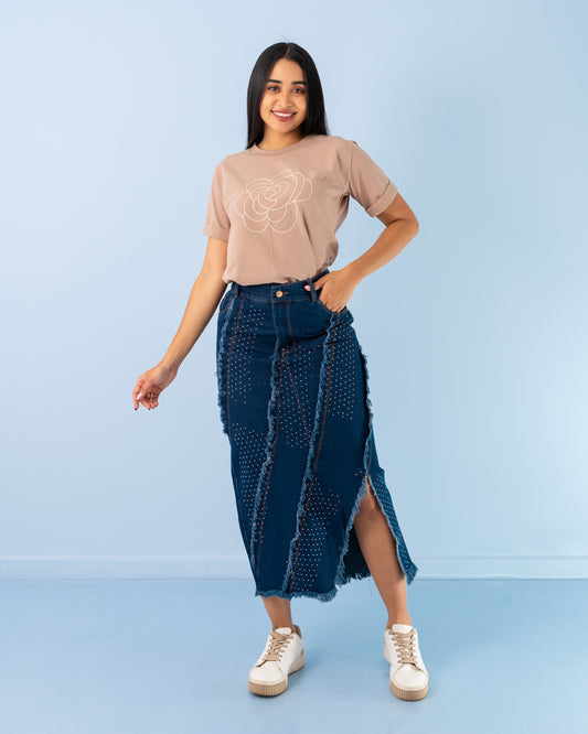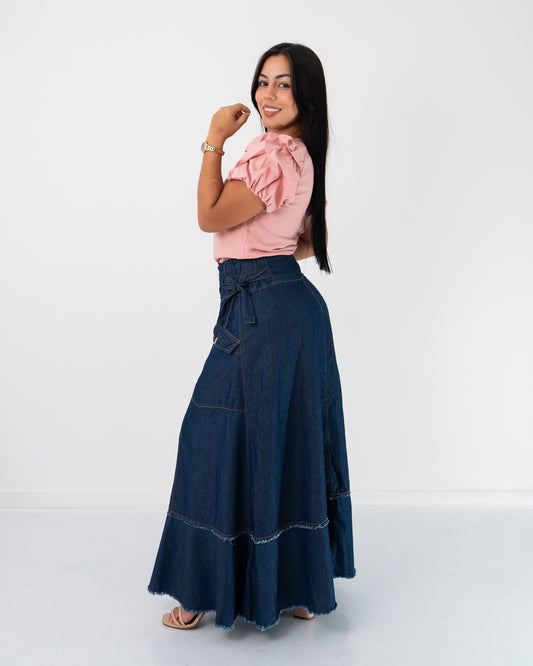 FALDA JEANS LARGA CORTES A LOS LADOS