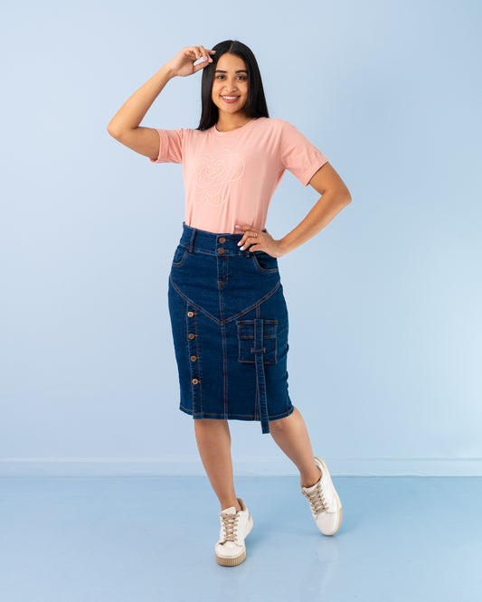 FALDA JEANS 3/4 ENRESORTADA BOTONES ADELANTE