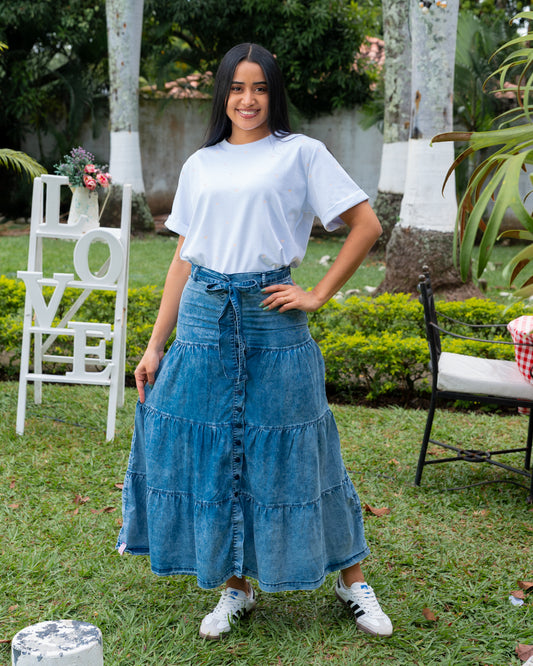 FALDA LARGA BOTONES ADELANTE EN TIEMPOS