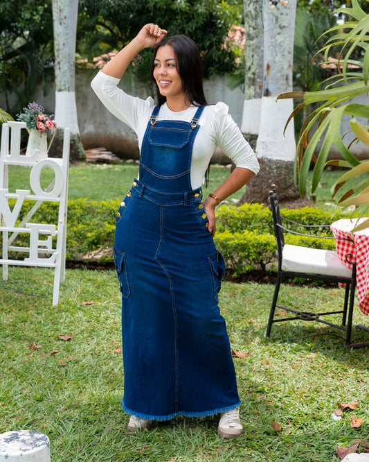JARDINERA LARGA JEANS BOLSILLOS CAMUFLADA