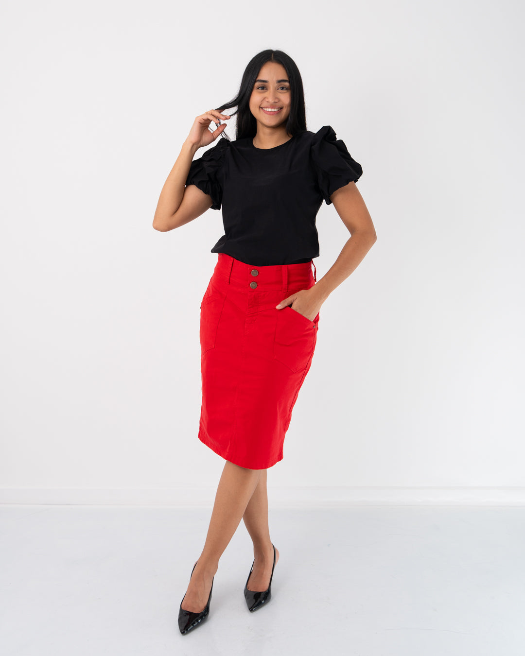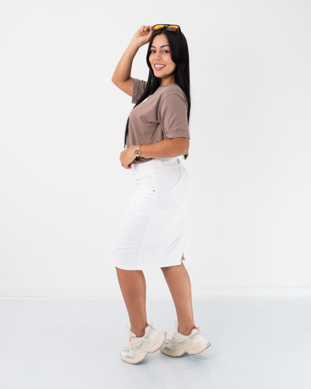 Falda clásica 3/4 en drill de alta calidad, diseño versátil y elegante para tus looks diarios o ejecutivos.