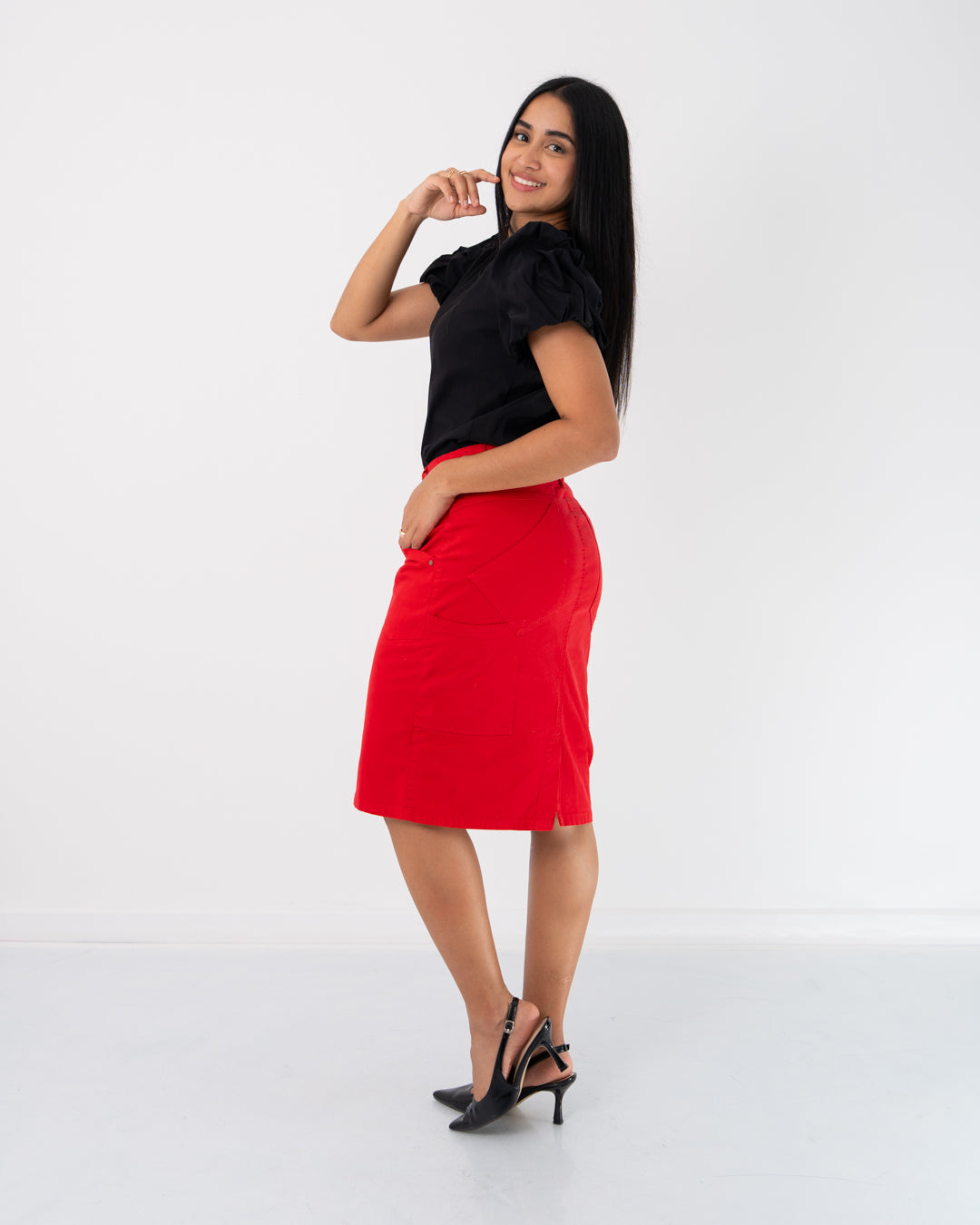 Resalta tu estilo con nuestra Falda Drill 3/4 Clásica, una prenda atemporal que combina elegancia, comodidad y practicidad.
