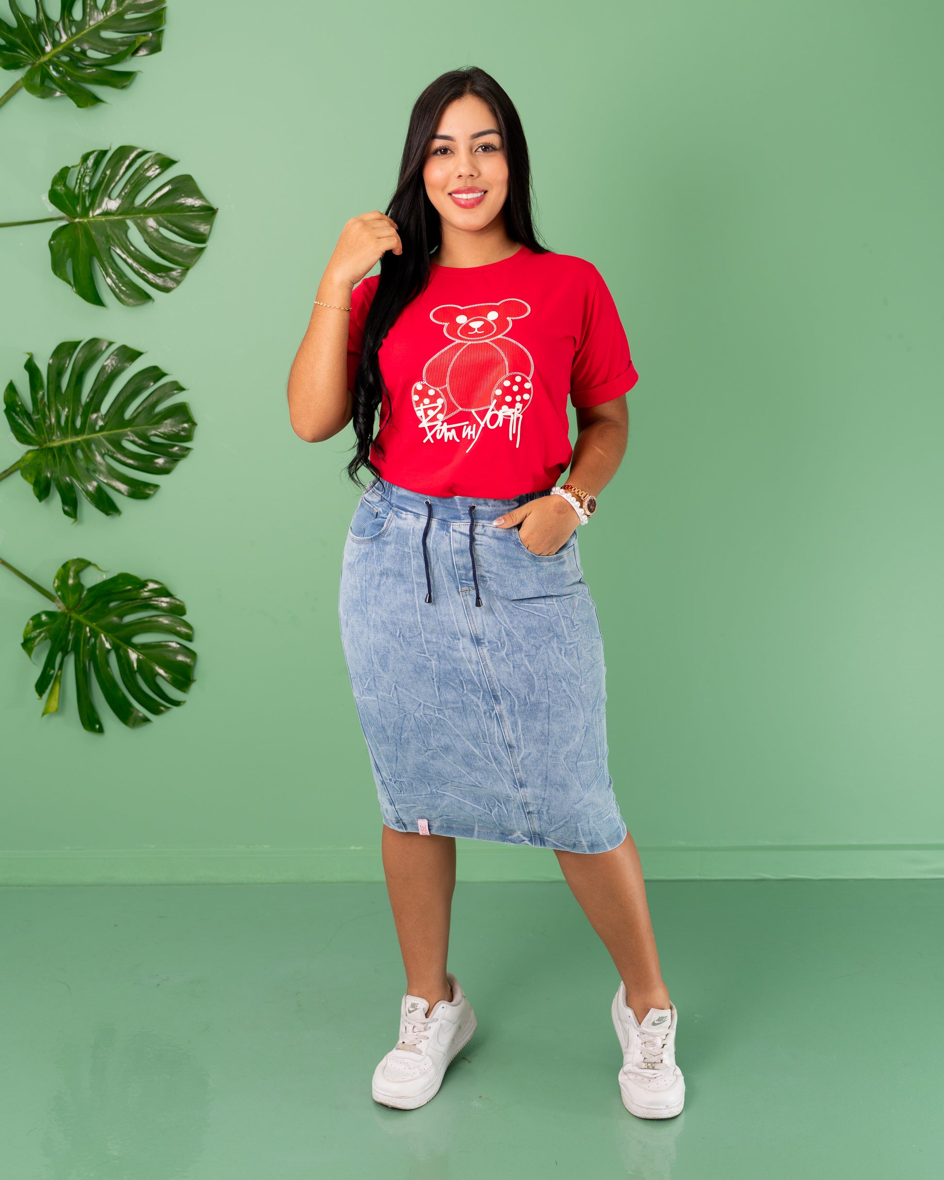 Ideal para combinar con camisetas estampadas, tenis o sandalias, esta falda es una opción perfecta para cualquier día de la semana.