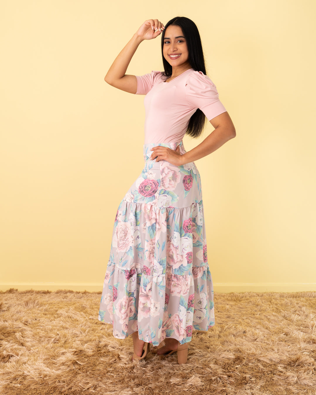 Falda larga estampada – Romanticismo y frescura en cada movimiento