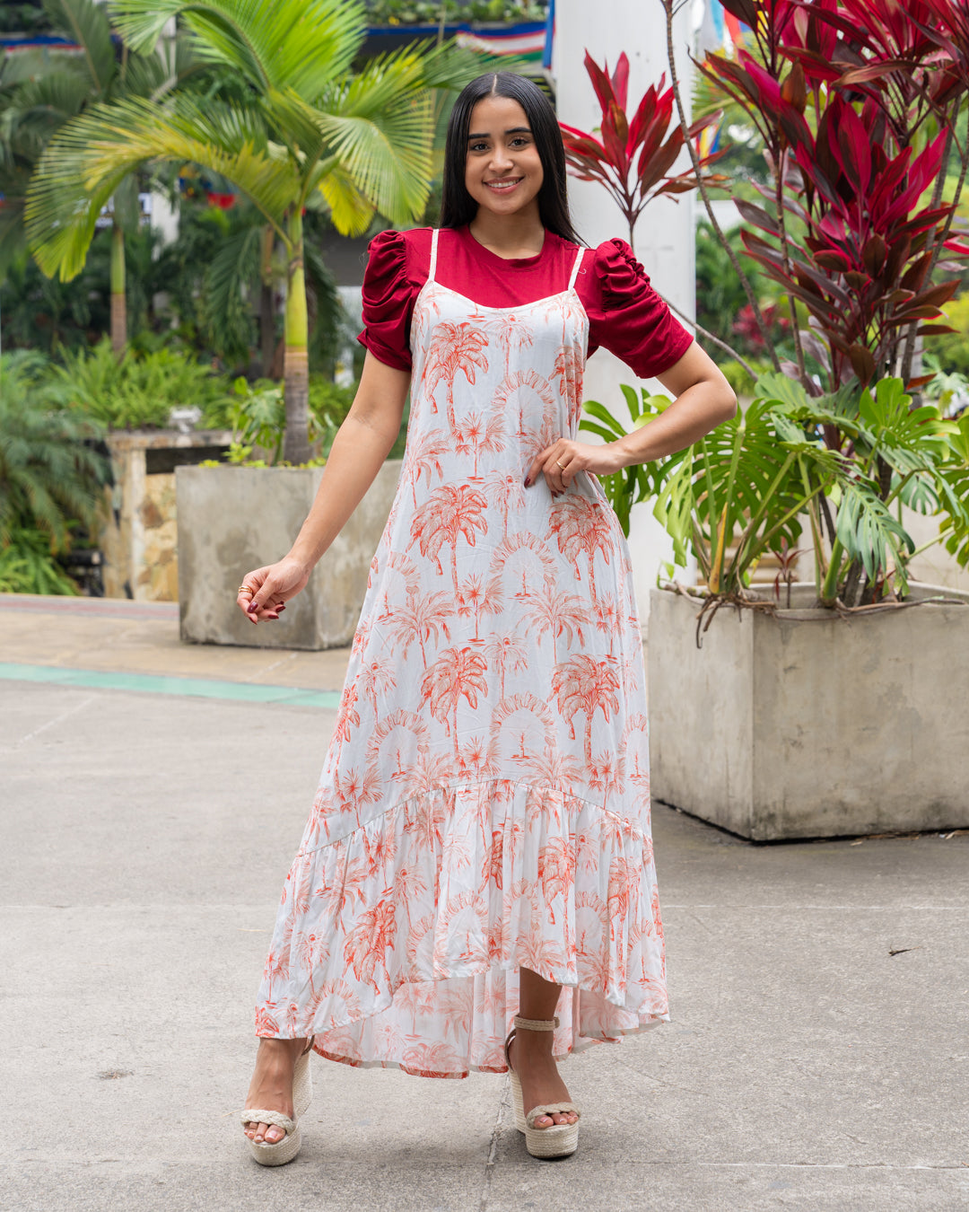[Consejos de Estilo] Para un look de día, úsalo con sandalias planas o de cuña, y combínalo con una camiseta básica debajo. Si buscas un estilo más formal, opta por unas sandalias de tacón y accesorios sencillos que complementen el estampado. ¡Este vestido es una inversión en versatilidad y originalidad!