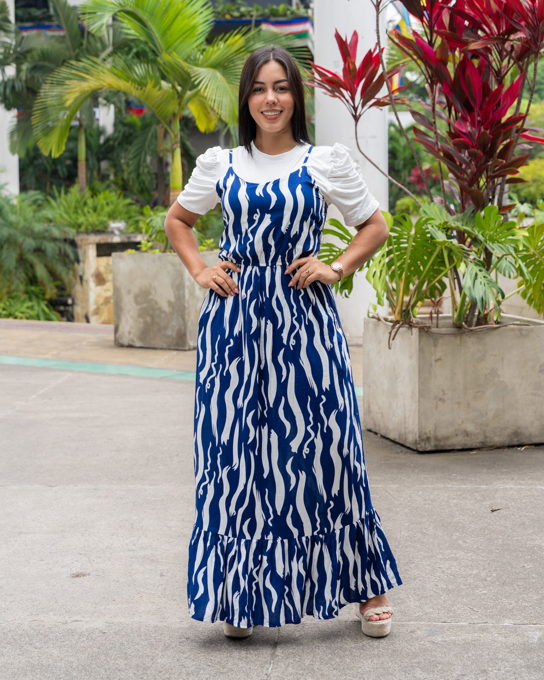 Confeccionado en la popular y ligera tela chalis, este vestido te brinda una caída espectacular y una sensación de frescura inigualable. Su diseño de cintura ajustada y la falda con vuelo estilizan tu figura, mientras que los vibrantes estampados disponibles (florales, geométricos y de rayas) te permiten expresar tu personalidad única. Los tirantes finos le dan un toque delicado, y el detalle de volantes en el dobladillo añade un extra de feminidad.